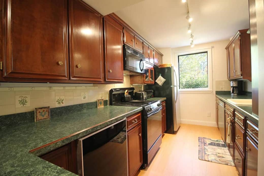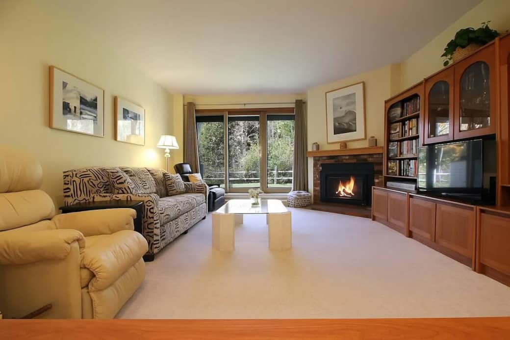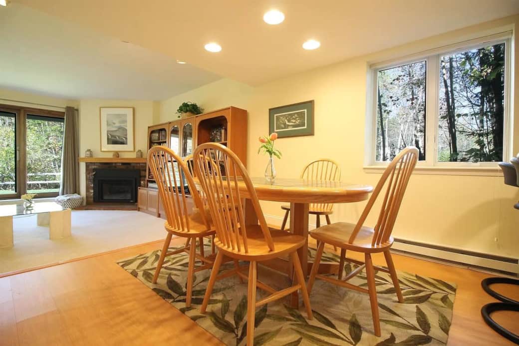 Guests have full access to the entire townhouse, including all bedrooms, bathrooms, the fully equipped kitchen, living and dining areas, fireplace, private deck, backyard, and direct access to the Mad River and nearby hiking trails. You’ll also enjoy private use of the sauna, jetted tub, and steam shower.